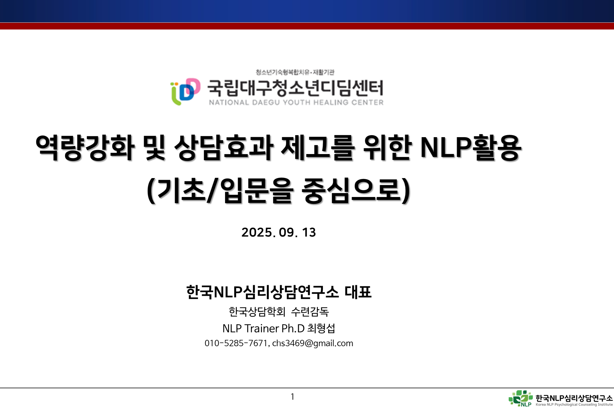 - ◈ ◈ 2025년 하반기 NLP Practitioner자격과정 개설 안내◈ ◈ 2025-06-02